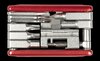 Farbe: redWerkzeug mit 16 Funktionen. Diese sind ein Innensechskant 2/ 3/ 4/ 5/ 6/ 8, ein Rundinnensechskant 25, ein Philips 2, ein Schlitzschraubenzieher, ein Speichenschlüssel 13/ 14/ 15/ 16G und Mavic Spline, ein Kettennieter und ein Flaschenöffner.