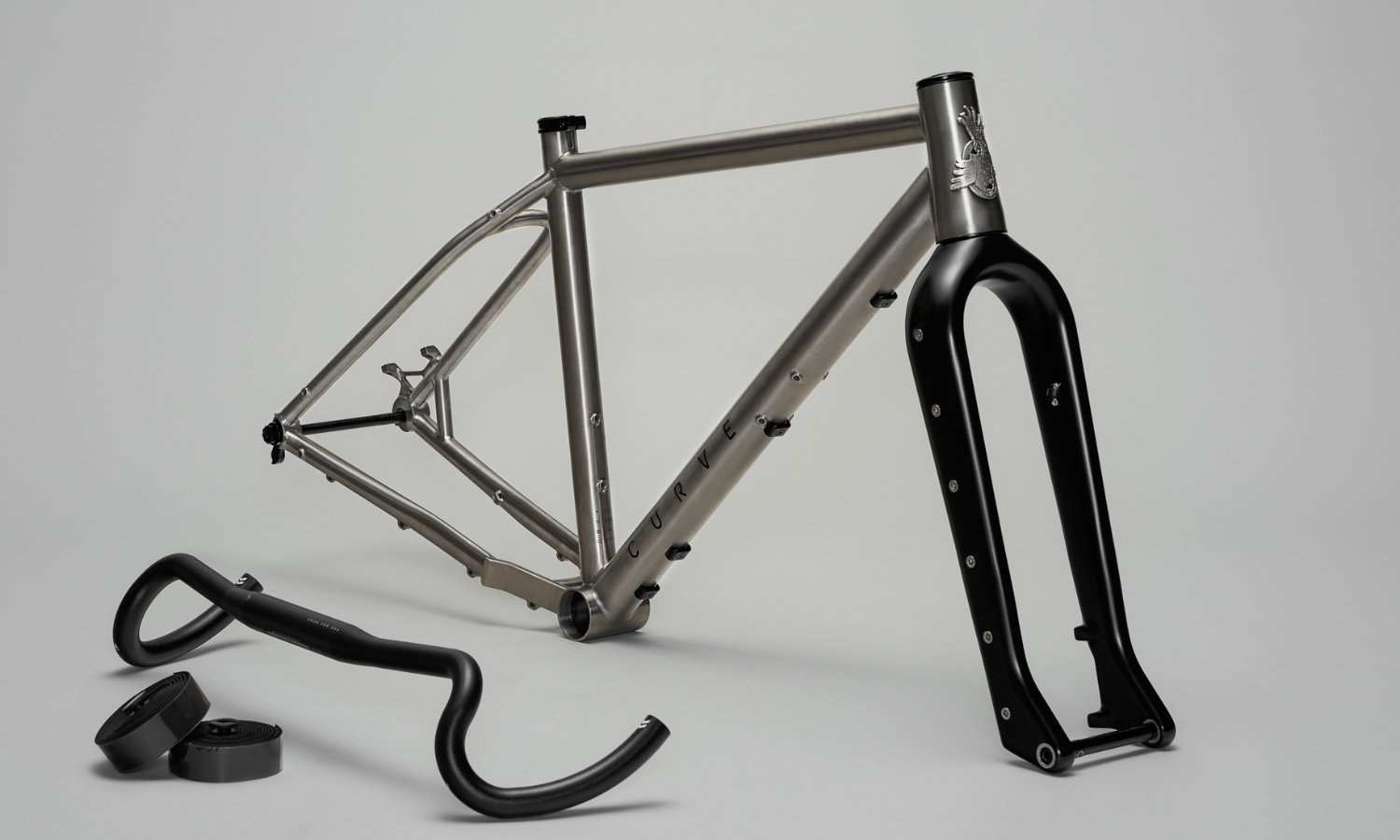 Curve hat zu ihren Velos einige Komponenten entwickelt, zum Beispiel besonders breite Gravel-Lenker, Steckachsen an welchen Gepäckträger montiert werden können, Gabel, Lenkerbänder. Auch diese Teile führen wir bei uns im Sortiment.