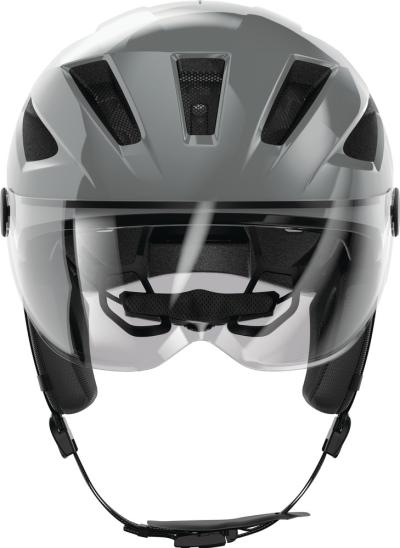 SICHER DURCH DEN GROßSTADTDSCHUNGEL In den Schluchten der Stadt gehört ein Helm immer dazu. Der Pedelec 2.0 ACE ist dabei die erste Wahl für alle Urban Biker. Im Großstadtverkehr ist ein Helm für Sie als Radfahrer ein unverzichtbarer Begleiter. Denn Unfälle passieren schnell und wenn es zu einem Sturz kommt, schützt ein Fahrradhelm vor größeren Schäden. ABUS bietet mit dem Pedelec 2.0 ACE einen Fahrradhelm, der die hohen Sicherheitsanforderungen der Großstadt erfüllt. Mit seinem tiefen Schläfenbereich bietet er dem Träger besonderen Schutz. Darüber hinaus zeichnet den Pedelec 2.0 ACE eine integrierte Regenhaube aus, die sich bei den ersten Regentropfen schnell über den Helm ziehen lässt. Das besonders helle, aufladbare Licht und das austauschbare Visier bieten zusätzlichen, passiven Schutz.