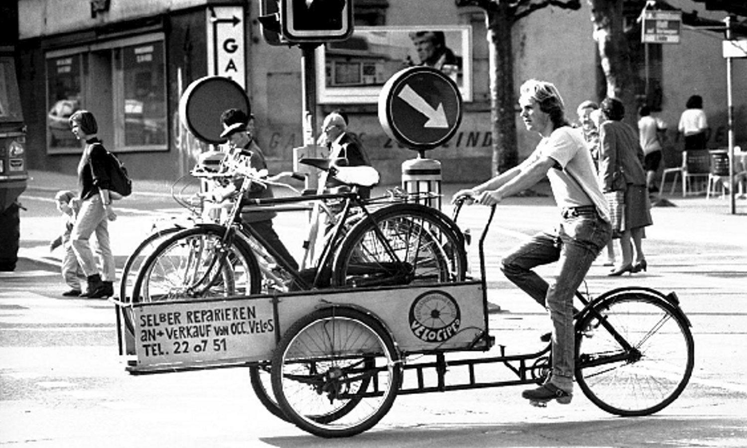 Transportvelos sind im Velociped seit der Gründung 1988 im Einsatz. Ein Firmenauto haben wir nie besessen. Unsere Transporte haben wir immer mit Cargobikes und Anhänger gemacht.