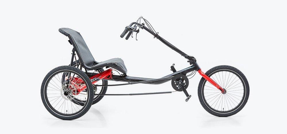 Das TRIGO UP von Hasebikes ist sehr flexibel. Mit Obenlenker statt Lenker unter dem Sitz, ist es ebenso einfach verstellbar wie das TRIGO. Der oben gelegene Lenker und das tiefliegende Tretlager sorgen für ein gewohntes Gefühl beim Fahren.