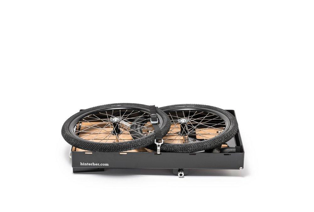 Ausstattung: Ladefläche 720x520mm, 1 LED-Rücklicht, ein Spanngurt, 20"-Räder, Weber-Deichsel, Deichseladapter mit Klappstütze