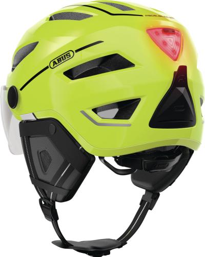 SICHER DURCH DEN GROßSTADTDSCHUNGEL In den Schluchten der Stadt gehört ein Helm immer dazu. Der Pedelec 2.0 ACE ist dabei die erste Wahl für alle Urban Biker. Im Großstadtverkehr ist ein Helm für Sie als Radfahrer ein unverzichtbarer Begleiter. Denn Unfälle passieren schnell und wenn es zu einem Sturz kommt, schützt ein Fahrradhelm vor größeren Schäden. ABUS bietet mit dem Pedelec 2.0 ACE einen Fahrradhelm, der die hohen Sicherheitsanforderungen der Großstadt erfüllt. Mit seinem tiefen Schläfenbereich bietet er dem Träger besonderen Schutz. Darüber hinaus zeichnet den Pedelec 2.0 ACE eine integrierte Regenhaube aus, die sich bei den ersten Regentropfen schnell über den Helm ziehen lässt. Das besonders helle, aufladbare Licht und das austauschbare Visier bieten zusätzlichen, passiven Schutz.