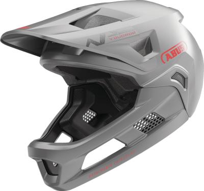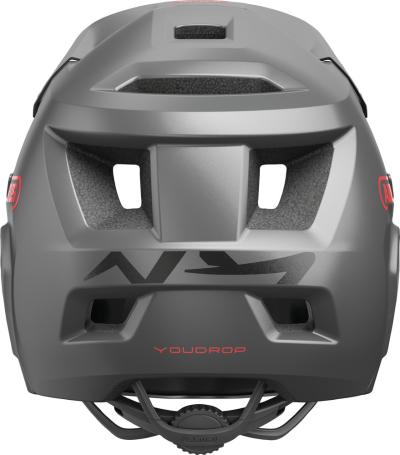 EIN HELM FÜR MUTIGE KIDS Schneller, weiter, höher: Junge Mountainbiker sind besonders mutig, wenn sie ruppige Strecken heruntersausen oder abenteuerliche Trails erkunden. Ein effektiver Schutz ist also unabdingbar. Mit dem Fullface-Helm YouDrop FF ist jeder Nachwuchs-Profi gut geschützt wie seine Vorbilder aus der MTB-Szene. Egal, ob Groß oder Klein, ob auf dem Laufrad oder dem Mountainbike – der Helm eignet sich für alle Kids und Jugendlichen. Der Kinnschutz des Helmes sichert Gesichtspartien wie Kiefer oder Kinn ab und kann bei Bedarf entfernt werden. Als Open Face Variante wird der Helm so im Handumdrehen zum luftig-lässigen Begleiter auf der nächsten Radtour. Auch bei waghalsigen Sprüngen oder Downhill-Action sorgt das clevere Belüftungssystem des YouDrop FF für einen kühlen Kopf. Wer ins Schwitzen kommt, kann die komfortablen Polster im Helm herausnehmen und per Hand waschen. Ein abnehmbarer Schirm mit Break-Away-Funktion, integrierte Fliegennetze und unser MTB-spezifisches Verstellsystem runden das Gesamtpaket ab.
