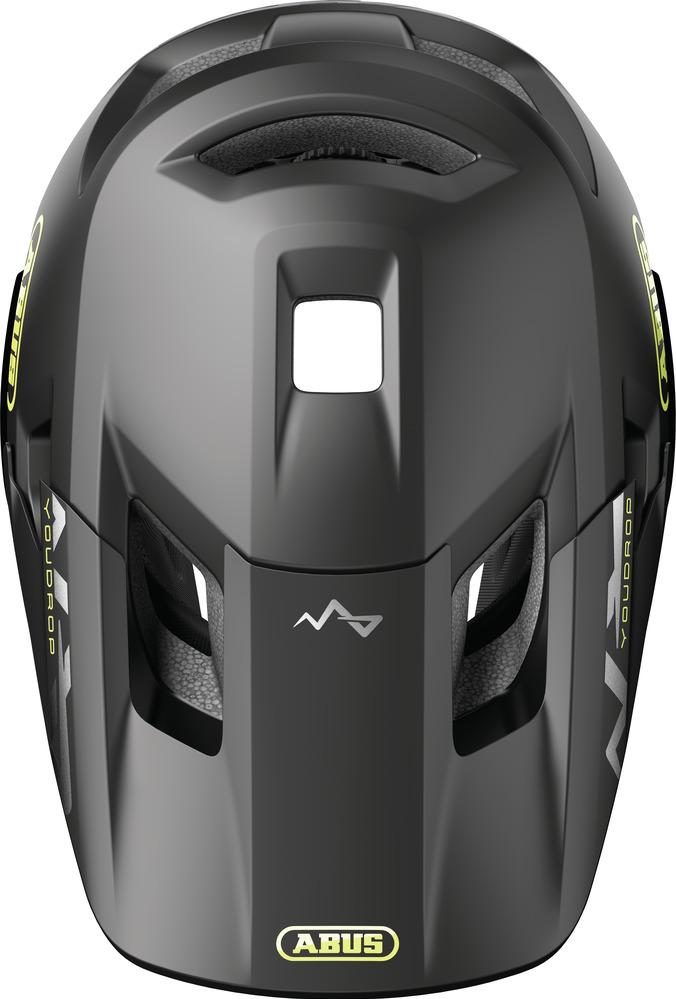 EIN HELM FÜR MUTIGE KIDS Schneller, weiter, höher: Junge Mountainbiker sind besonders mutig, wenn sie ruppige Strecken heruntersausen oder abenteuerliche Trails erkunden. Ein effektiver Schutz ist also unabdingbar. Mit dem Fullface-Helm YouDrop FF ist jeder Nachwuchs-Profi gut geschützt wie seine Vorbilder aus der MTB-Szene. Egal, ob Groß oder Klein, ob auf dem Laufrad oder dem Mountainbike – der Helm eignet sich für alle Kids und Jugendlichen. Der Kinnschutz des Helmes sichert Gesichtspartien wie Kiefer oder Kinn ab und kann bei Bedarf entfernt werden. Als Open Face Variante wird der Helm so im Handumdrehen zum luftig-lässigen Begleiter auf der nächsten Radtour. Auch bei waghalsigen Sprüngen oder Downhill-Action sorgt das clevere Belüftungssystem des YouDrop FF für einen kühlen Kopf. Wer ins Schwitzen kommt, kann die komfortablen Polster im Helm herausnehmen und per Hand waschen. Ein abnehmbarer Schirm mit Break-Away-Funktion, integrierte Fliegennetze und unser MTB-spezifisches Verstellsystem runden das Gesamtpaket ab.