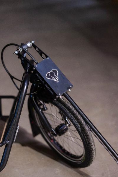CARLA verfügt über eine hydraulische Auflaufbremse welche für mehr Fahrsicherheit sort. Danke der Bremse und der Dreirad-Konstruktion beeinflusst der Anhänger die Fahrt nur sehr wenig, selbs wenn er stark beladen ist. CARLA zeichnet sich durch herausragende Agilität und einen sehr kleinen Wendekreis aus. Der CARLA-Fahrradanhänger passt sehr gut an E-Bikes, Longtails und (Micro-)Cargobikes.