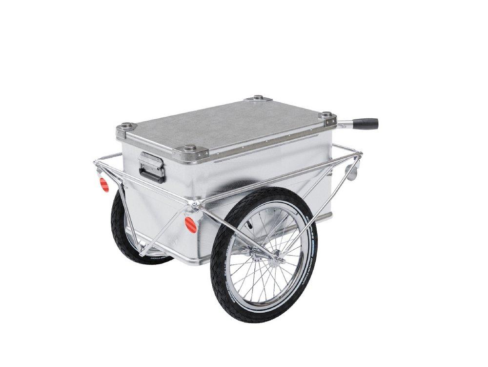 Der BOX 1.0 ist der kleinste BOX-polyroly. Er bietet Platz für einen Normbehälter im Format 60 × 40 cm und wiegt rund 6,7 kg – damit gehört er zu den leichtesten Cargoanhängern überhaupt. Der BOX 1.0 wird je nach Transportaufgabe individuell mit einem Behälter, einer Kiste oder einem Korb aus dem Brockenhaus ausgestattet. Auch kleine Behälter lassen sich sicher im Spaceframe transportieren, eine Bodenplatte wird nicht benötigt.