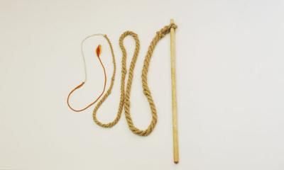 Komplette Chlöpfer-Geissel aus Hanfseil mit Buchen-Stab (85cm) und 4mm-Zwick - 360cm