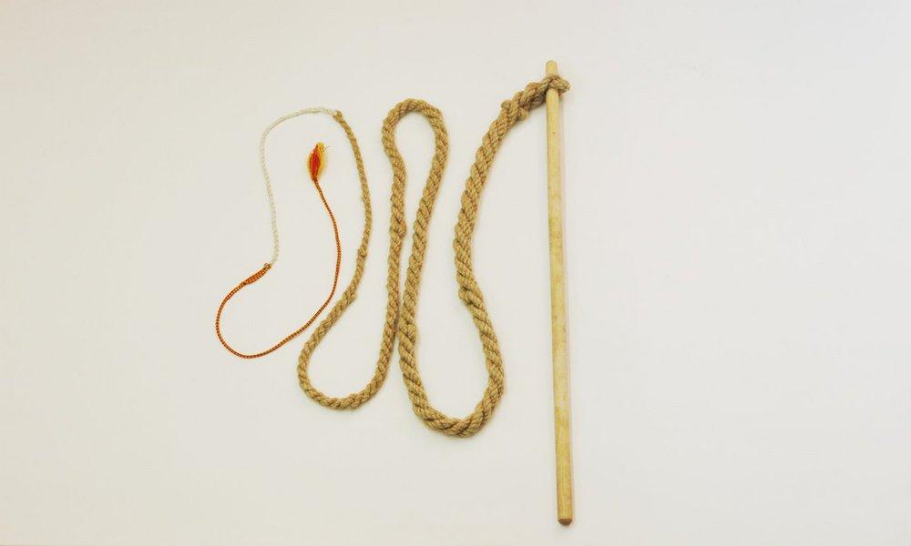 Komplette Chlöpfer-Geissel aus Hanfseil mit Buchen-Stab (85cm) und 4mm-Zwick - 380cm