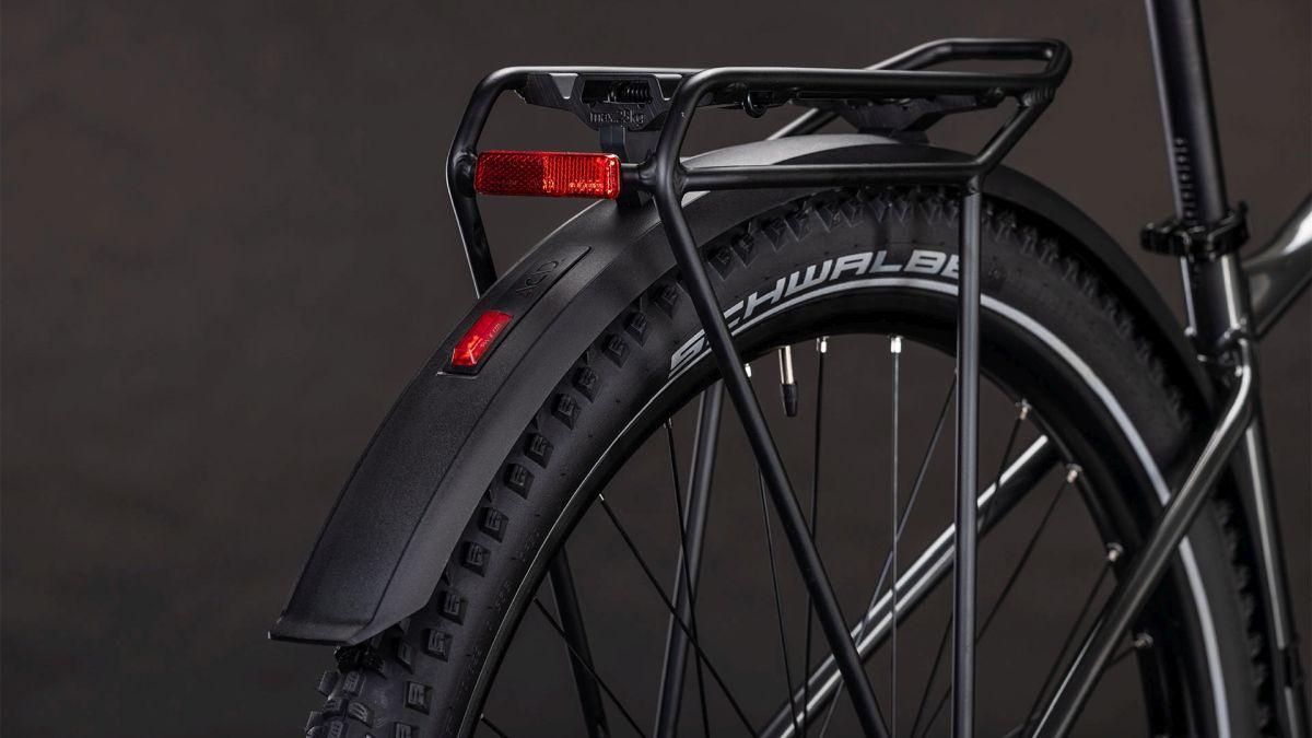 Ein Bike für absolut alles – gibt's das? Natürlich gibt's das und unser Aim SLX FE ist der beste Beweis. Dank integrierten Schutzblechen, Lichtern, Seitenständer und einem vielseitigen Gepäckträger ist es optimal gerüstet für den Einsatz in der City, ob zum Pendeln ins Office oder für Besorgungen aller Art. Wenn's über Land und Schotterwege geht, liefern die 100 mm Federgabel, die 12-fach Deore Schaltung und hydraulischen Scheibenbremsen von Shimano sowie griffige Schwalbe 2.25 Zoll Reifen erstklassigen Support. Nicht zu vergessen unser Size Split System – so finden alle das für sich perfekt proportionierte Aim SLX FE. Man kann eben doch alles haben ...