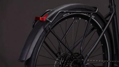 Understatement trifft Klasse – so gesehen beim Trapezrahmen des Editor Hybrid FE. Seine leichte, robuste Aluminiumkonstruktion mit den im Smooth Welding Verfahren gestalteten Hauptrohrverbindungen ergibt ein elegantes Chassis, das wir mit einer leichten und zugleich stabilen Vollcarbongabel ergänzt haben. Um die Optik möglichst clean zu halten, verlaufen die Leitungen im Inneren und der 400 Wh starke Akku wurde ästhetisch ins Unterrohr integriert, was auch noch Platz und Gewicht spart. Dazu kommt ein vielseitiger, robuster Gepäckträger am Heck und ein optionaler Front-Gepäckträger für sämtliches Hab und Gut auf dem Weg durch die City. Außerdem Schutzbleche, helle Lichter und ein praktischer Seitenständer. Kurz: Wir haben an alles gedacht, was im Großstadtdschungel wichtig ist!