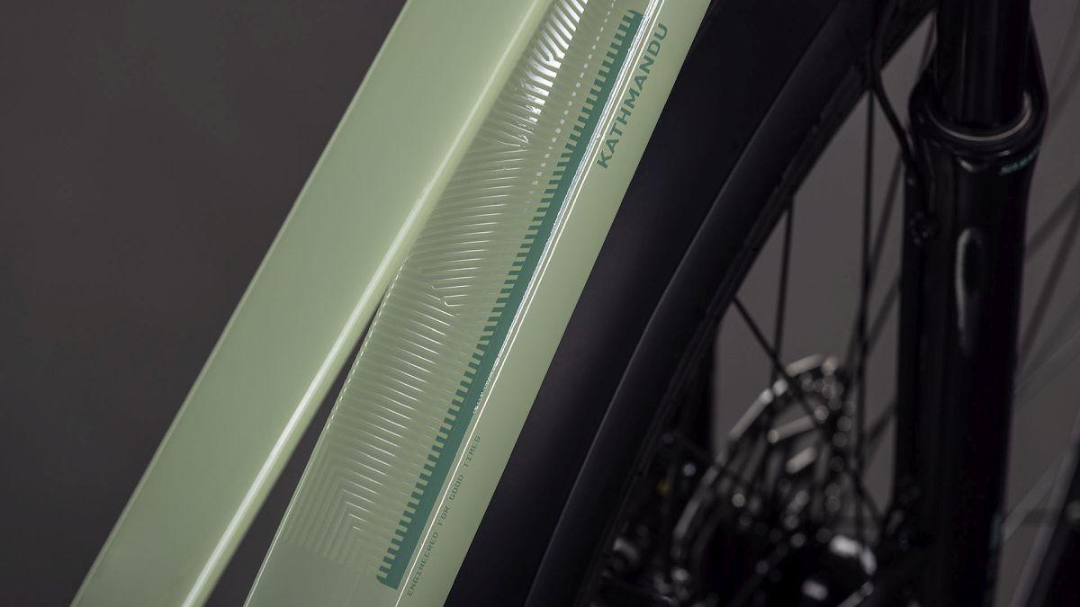 Der Trapezrahmen des Kathmandu aus dem Hause CUBE ist ein Sinnbild für klassische Eleganz! Der integrierte Gepäckträger IC 3.0 geht nahtlos und formschön in unsere ACID Schutzbleche über. Dazu gibt's am Hinterrad Aufnahmen für eine Flat Mount Scheibenbremse und einen Seitenständer. Seine cleane, aufgeräumte Optik verdankt das Chassis den im Smooth Welding Verfahren gestalteten Rohrverbindungen und im Unterrohr verlaufenden Zügen. So viel zum Aussehen. In Sachen Funktion haben wir den Hinterbau mit einer Steckachse versehen und ein konisches Steuerrohr für optimierte Stabilität und Lenkpräzision (selbst bei voller Beladung) verbaut. Also alles da, was es auf Tour braucht – den Rest machst du!