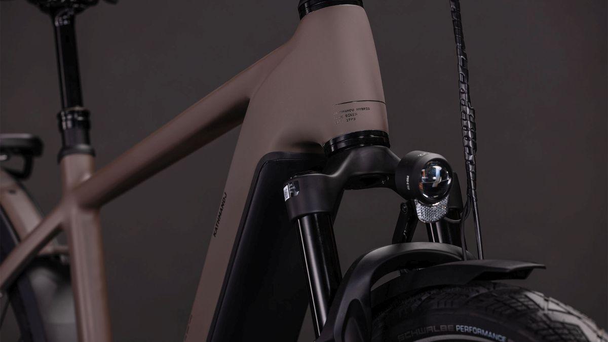 Der Rahmen des CUBE Kathmandu Hybrid sieht auf den ersten Blick vielleicht unspektakulär aus – auf den zweiten erschließen sich jedoch seine Eleganz und Klasse, außerdem die vielen Innovationen und cleveren Details. Dabei ist der samt 800 Wh PowerTube Akku ästhetisch und sauber ins Design integrierte CX Motor von Bosch nur eins der Highlights. Ein weiteres ist unsere Efficient Comfort Geometry, die harmonisch mit der 100 mm Federgabel Hand in Hand arbeitet, was die Kontrolle vor allem bei schwierigen Bedingungen optimiert. Dazu die interne Zugverlegung, die den cleanen Look des Chassis unterstreicht. Was noch? Ein vielseitiges, beinahe unzerstörbares UDH für einfache Ersatzteilverfügbarkeit, ein integrierter Kettenschutz und unser stabiler, robuster, überaus formschöner integrierter Gepäckträger IC 3.0, auf dem alles Platz findet, was auf Abenteuertour mit muss.