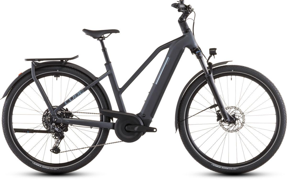 Wer mit dem CUBE Kathmandu Hybrid ONE unterwegs ist, kann seiner Abenteuerlust freien Lauf lassen. Denn dieses Bike ist mit einem 800 Wh PowerTube Akku ausgerüstet, der den leistungsstarken Bosch CX Antrieb mit bis zu 85 Nm Drehmoment zuverlässig vorwärtstreibt. Außerdem mit einer einfach zu bedienenden, breit gefächerten Cues 10-fach Schaltung von Shimano, welche diese Power wohldosiert auf die Straße bringt. So wird jede Route zum Spaziergang! In Sachen Komfort leisten die Suntour Luftfedergabel, eine gefederte Sattelstütze und der verstellbare Vorbau besonders an langen Tagen im Sattel wertvolle Dienste. Sichere, zuverlässige Bremskraft bei jedem Wetter ist das Spezialgebiet der kraftvoll zupackenden hydraulischen Shimano Scheibenbremsen. Ebenso mit an Bord ist ein Zubehör-Komplettset, bestehend aus einer Lichtanlage, Schutzblechen und natürlich unserem integrierten Gepäckträger IC 3.0. Soll heißen: Dieses E-Bike ist allzeit bereit für sämtliche Entdeckertouren!