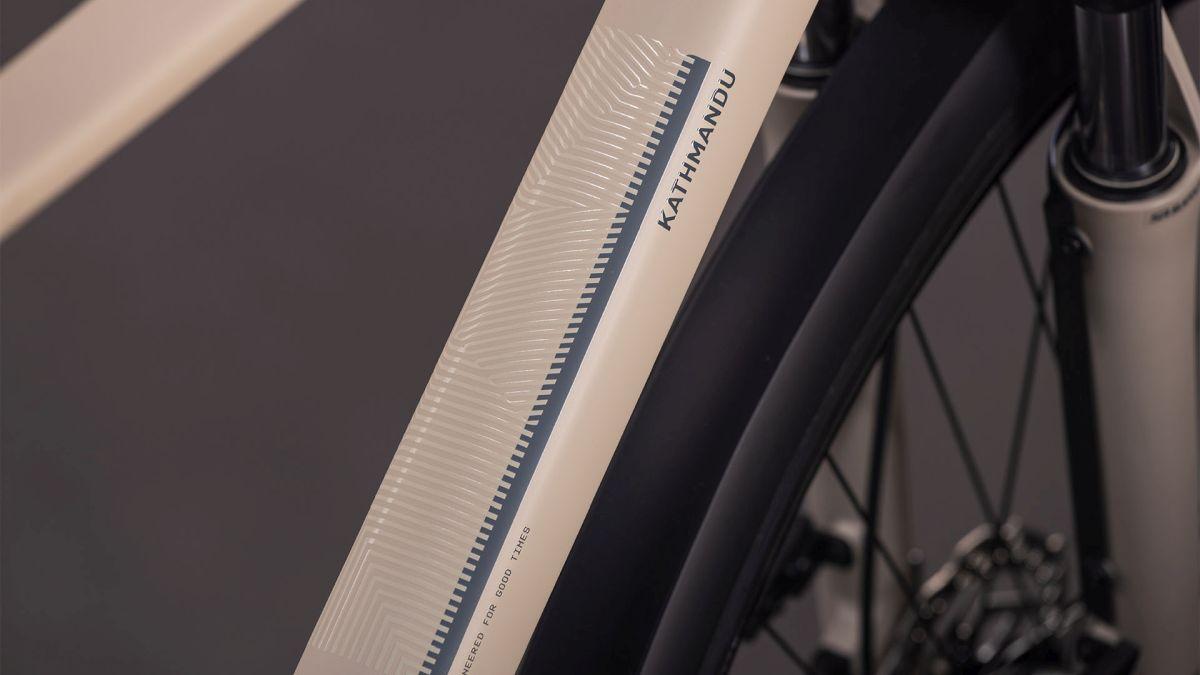 Wir hier bei CUBE sind unter anderem für unsere extreme Liebe zum Detail bekannt. Deshalb haben wir das Kathmandu auch mit dem integrierten Gepäckträger IC 3.0 ausgestattet, der nahtlos und formschön in unsere ACID Schutzbleche übergeht. Dazu gibt's am Hinterrad Aufnahmen für eine Flat Mount Scheibenbremse und einen Seitenständer. Seine cleane, aufgeräumte Optik verdankt das Chassis den im Smooth Welding Verfahren gestalteten Rohrverbindungen und im Inneren verlaufenden Zügen. So viel zum Aussehen. In Sachen Funktion haben wir den Hinterbau mit einer Steckachse versehen und ein konisches Steuerrohr für optimierte Stabilität und Lenkpräzision (selbst bei voller Beladung) verbaut. Also alles da, was es auf Tour braucht – den Rest machst du!