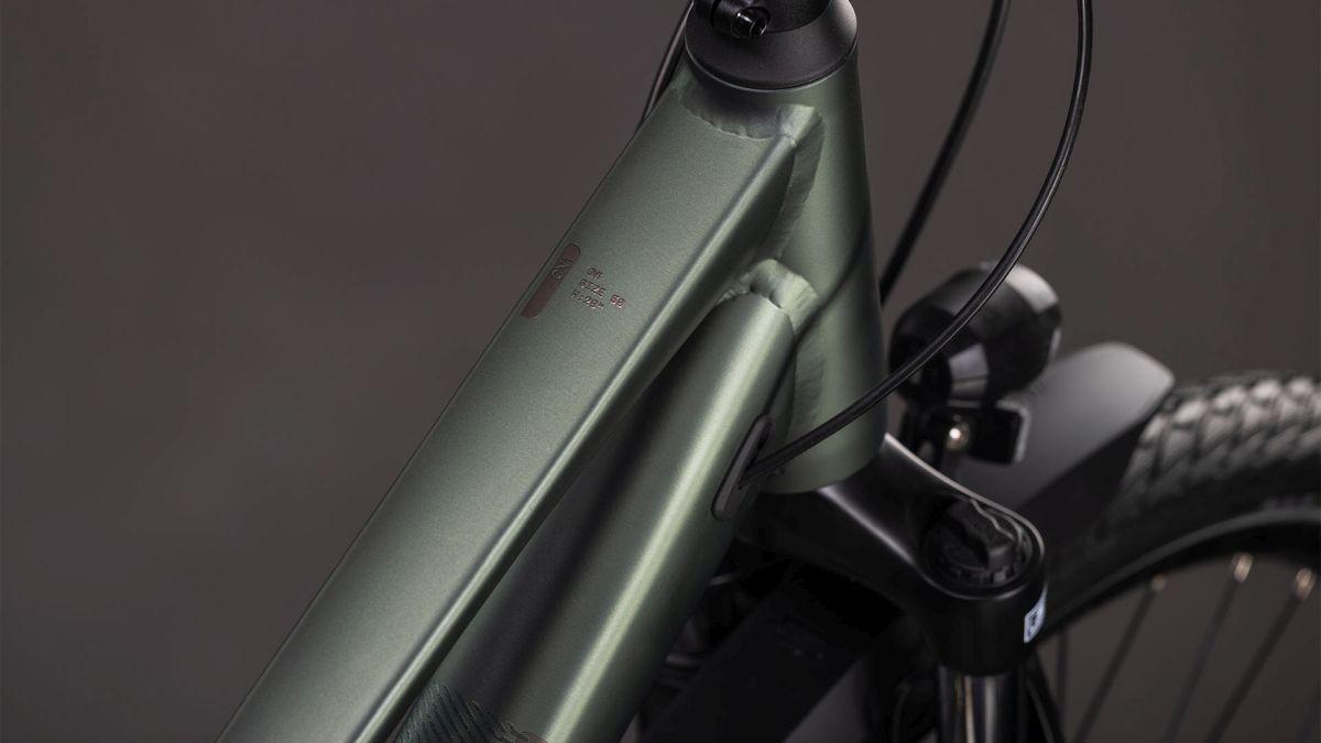 Der Trapezrahmen des Kathmandu aus dem Hause CUBE ist ein Sinnbild für klassische Eleganz! Der integrierte Gepäckträger IC 3.0 geht nahtlos und formschön in unsere ACID Schutzbleche über. Dazu gibt's am Hinterrad Aufnahmen für eine Flat Mount Scheibenbremse und einen Seitenständer. Seine cleane, aufgeräumte Optik verdankt das Chassis den im Smooth Welding Verfahren gestalteten Rohrverbindungen und im Unterrohr verlaufenden Zügen. So viel zum Aussehen. In Sachen Funktion haben wir den Hinterbau mit einer Steckachse versehen und ein konisches Steuerrohr für optimierte Stabilität und Lenkpräzision (selbst bei voller Beladung) verbaut. Also alles da, was es auf Tour braucht – den Rest machst du!