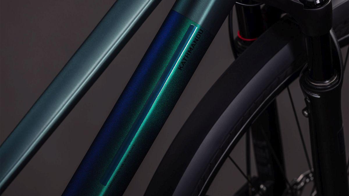 Der Trapezrahmen des Kathmandu aus dem Hause CUBE ist ein Sinnbild für klassische Eleganz! Der integrierte Gepäckträger IC 3.0 geht nahtlos und formschön in unsere ACID Schutzbleche über. Dazu gibt's am Hinterrad Aufnahmen für eine Flat Mount Scheibenbremse und einen Seitenständer. Seine cleane, aufgeräumte Optik verdankt das Chassis den im Smooth Welding Verfahren gestalteten Rohrverbindungen und im Unterrohr verlaufenden Zügen. So viel zum Aussehen. In Sachen Funktion haben wir den Hinterbau mit einer Steckachse versehen und ein konisches Steuerrohr für optimierte Stabilität und Lenkpräzision (selbst bei voller Beladung) verbaut. Also alles da, was es auf Tour braucht – den Rest machst du!