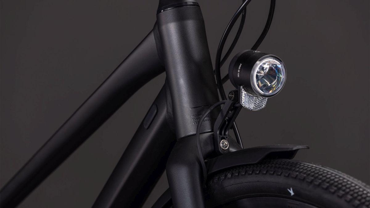 Der Trapezrahmen unseres vielseitigen Nulane wirkt auf den ersten Blick vielleicht unspektakulär, doch sein Komfort und Handling sind kaum zu übertreffen. Das Auf- und Absteigen gelingt spielend leicht, was den Alltag spürbar erleichtert. Die Kombination aus superleichten, doppelt konifizierten Aluminiumrohren und einer Vollcarbongabel hält das Gewicht niedrig und die Fahrdynamik hoch. Integrierte Schutzbleche, Gepäckträger, Beleuchtung und ein Seitenständer runden das Setup ab – perfekt für den täglichen Weg ins Büro oder entspannte Wochenendtouren. Ein echtes Highlight sind die Steckachsen vorne und hinten, die für stabile Kontrolle sorgen, egal ob mit oder ohne Gepäck unterwegs.