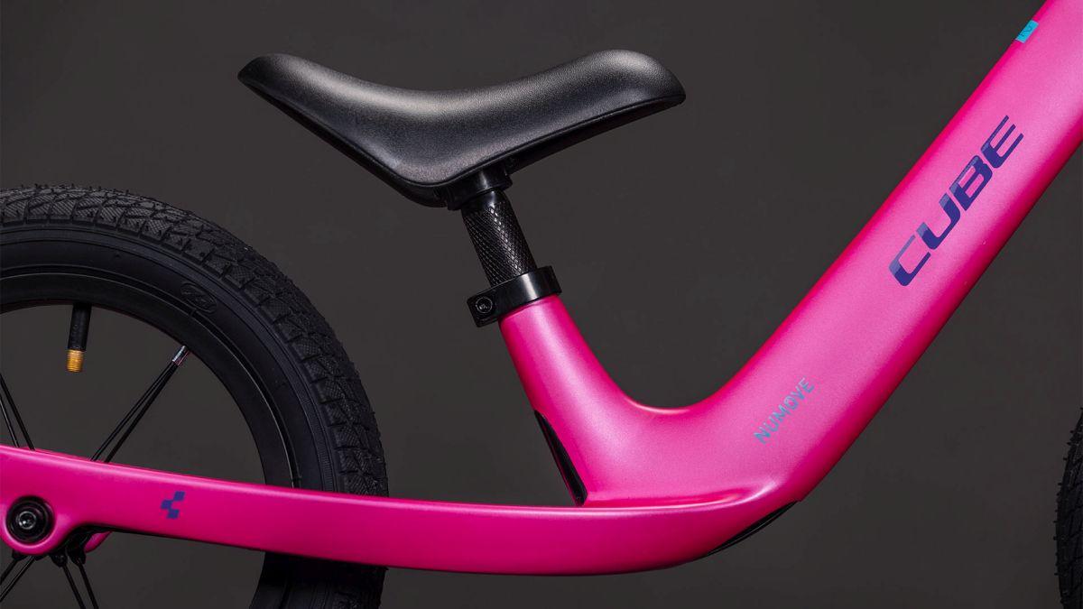 Das Numove 120 Walk hat ein ganz besonders Ass im Ärmel, nämlich seinen komplett aus Magnesium gefertigten Rahmen. Dieses Material ist unglaublich leicht und zugleich stabil und somit perfekt für das allererste Bike für die Minis. Außerdem haben wir vorsorglich alle kantigen Rohrabschlüsse abgerundet, um Verletzungen zu vermeiden, und einen Sattel verbaut, der sich in der Höhe verstellen lässt. Unkompliziert, leicht, robust und sicher – mehr braucht es nicht.