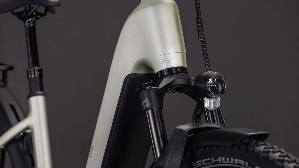 Der Tiefeinsteiger-Rahmen des Nuride Hybrid hält, was sein Name verspricht – einfaches, unkompliziertes Auf- und Absteigen sind damit fix inklusive. Doch da ist noch mehr: Neben einer Federgabel mit 100 mm Federweg für ein Plus an Fahrkomfort und Kontrolle haben wir das Chassis mit großzügiger Reifenfreiheit (sogar inklusive der mitgelieferten Schutzbleche) ausgestattet. Im Inneren verlaufende Züge unterstreichen die cleane Optik. Ebenso harmonisch ins Rahmendesign integriert sind der Bosch CX Antrieb und der 800 Wh PowerTube Akku. On top gibt's einen integrierten Kettenschutz, serienmäßig verbaute Schutzbleche, Lichter, einen Seitenständer und unseren stabilen semi-integrierten Gepäckträger 2.0. Da kann das nächste Zweiradabenteuer direkt losgehen, oder?
