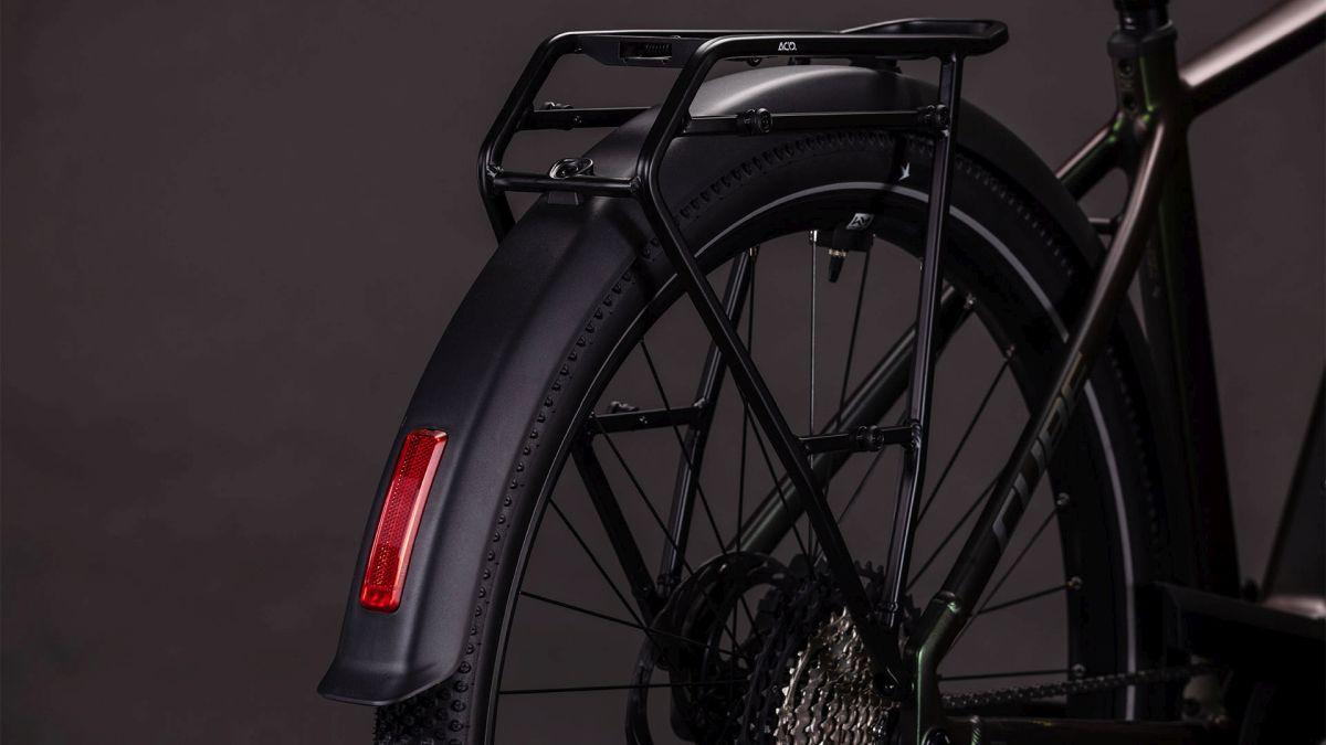 Der Nuride Hybrid Rahmen ist der Inbegriff funktioneller Ästhetik – finden wir zumindest und haben ihm neben unserer Efficient Comfort Geometry auch eine Federgabel mit 100 mm Federweg für ein Plus an Fahrkomfort und Kontrolle sowie großzügige Reifenfreiheit (sogar inklusive der mitgelieferten Schutzbleche) mitgegeben. Im Inneren verlaufende Züge und der integrierte Kettenschutz unterstreichen die cleane Optik. Ebenso harmonisch ins Rahmendesign integriert sind der Bosch CX Antrieb und der 800 Wh PowerTube Akku. On top gibt's serienmäßig verbaute Schutzbleche, Lichter, einen Seitenständer und: unseren formschönen, stabilen semi-integrierten Gepäckträger 2.0. Da kann das nächste Zweiradabenteuer direkt starten, oder?