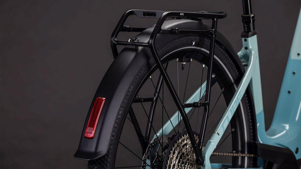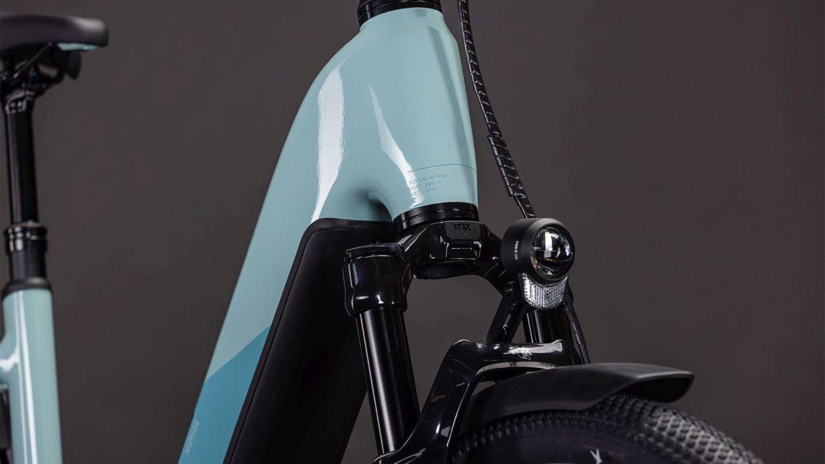 Der Tiefeinsteiger-Rahmen des Nuride Hybrid hält, was sein Name verspricht – einfaches, unkompliziertes Auf- und Absteigen sind damit fix inklusive. Doch da ist noch mehr: Neben einer Federgabel mit 100 mm Federweg für ein Plus an Fahrkomfort und Kontrolle haben wir das Chassis mit großzügiger Reifenfreiheit (sogar inklusive der mitgelieferten Schutzbleche) ausgestattet. Im Inneren verlaufende Züge unterstreichen die cleane Optik. Ebenso harmonisch ins Rahmendesign integriert sind der Bosch CX Antrieb und der 800 Wh PowerTube Akku. On top gibt's einen integrierten Kettenschutz, serienmäßig verbaute Schutzbleche, Lichter, einen Seitenständer und unseren stabilen semi-integrierten Gepäckträger 2.0. Da kann das nächste Zweiradabenteuer direkt losgehen, oder?