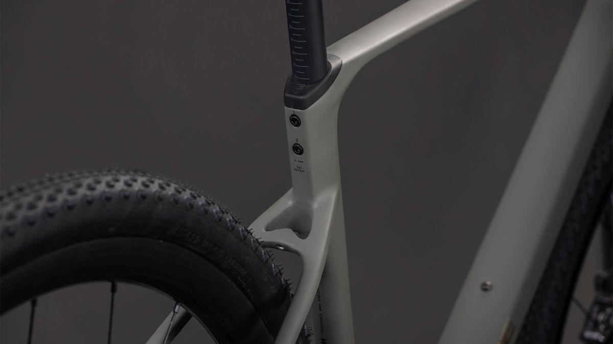 Im Chassis des Nuroad C:62 steckt unser gesamtes Know-how in Sachen Carbonrahmenbau speziell für den Gravel-Einsatz. Seine großzügige Reifenfreiheit ermöglicht die Aufnahme von bis zu 50 mm breiten Reifen – oder 45 mm breiten Pneus, dann sogar mit Schutzblechen. Außerdem gibt's eine integrierte Sattelklemmung und semi-integrierte Züge, was den cleanen, eleganten Look unterstreicht. Die Carbongabel aus unserem C:62® Carbon ist mit zwei verschiedenen Gepäckträger-Befestigungspunkten versehen und am Rahmen können Schutzbleche und ein Heck-Gepäckträger montiert werden. Ein weiteres Highlight ist das geringe Gewicht: lediglich 1150 g (bei mittlerer Größe). Insofern ist der Rahmen nicht nur superrobust, sondern auch superleicht. So geht Gravel-Biken heute!