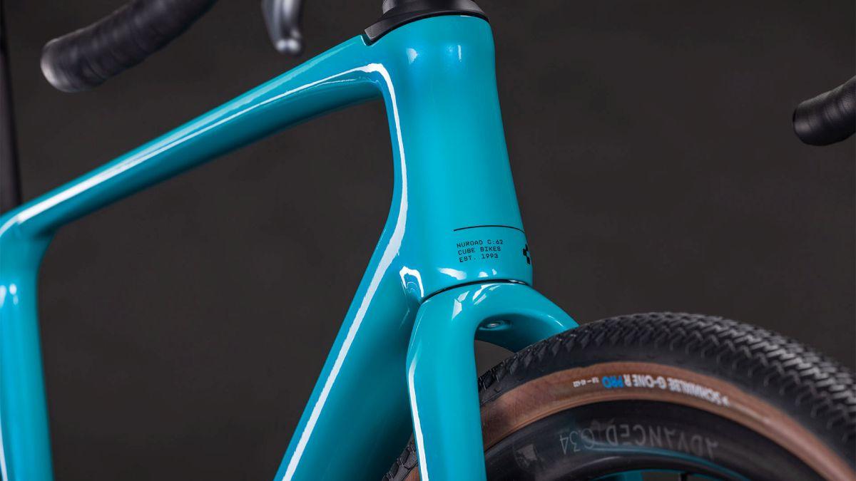 Im Chassis des Nuroad C:62 steckt unser gesamtes Know-how in Sachen Carbonrahmenbau speziell für den Gravel-Einsatz. Seine großzügige Reifenfreiheit ermöglicht die Aufnahme von bis zu 50 mm breiten Reifen – oder 45 mm breiten Pneus, dann sogar mit Schutzblechen. Außerdem gibt's eine integrierte Sattelklemmung und semi-integrierte Züge, was den cleanen, eleganten Look unterstreicht. Die Carbongabel aus unserem C:62® Carbon ist mit zwei verschiedenen Gepäckträger-Befestigungspunkten versehen und am Rahmen können Schutzbleche und ein Heck-Gepäckträger montiert werden. Ein weiteres Highlight ist das geringe Gewicht: lediglich 1150 g (bei mittlerer Größe). Insofern ist der Rahmen nicht nur superrobust, sondern auch superleicht. So geht Gravel-Biken heute!