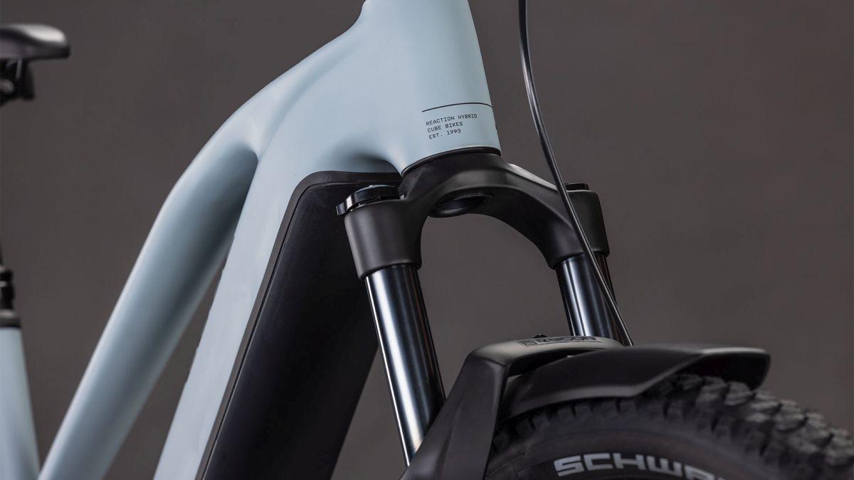Das Reaction Hybrid Race FE steckt voller praktischer Details. Zum einen ist es standardmäßig mit Schutzblechen, einem robusten Gepäckträger, einem sauber ins Design integrierten Beleuchtungssystem und einem stabilen Seitenständer versehen. Außerdem mit einer versenkbaren Sattelstütze für optimiertes Handling auf steilen Trails. Zum anderen macht die breit gefächerte 12-fach Transmission 90 von Sram selbst anspruchsvolle Routen zum Kinderspiel. Für höchsten Fahrkomfort und 1a-Kontrolle haben wir 2.6 Zoll breite, griffige Schwalbe Pneus und eine einfach einstellbare Rockshox Recon Silver Luftfedergabel mit 120 mm Federweg (100 mm bei den kleinsten Rahmengrößen und den Tiefeinsteiger-Modellen) verbaut. Apropos Kontrolle: Die hydraulischen Louise 4-Kolben-Scheibenbremsen von Magura verzögern das Bike selbst bei Nässe zuverlässig und sicher. Wir haben uns also um alles gekümmert – jetzt heißt's aufsitzen und Spaß haben!