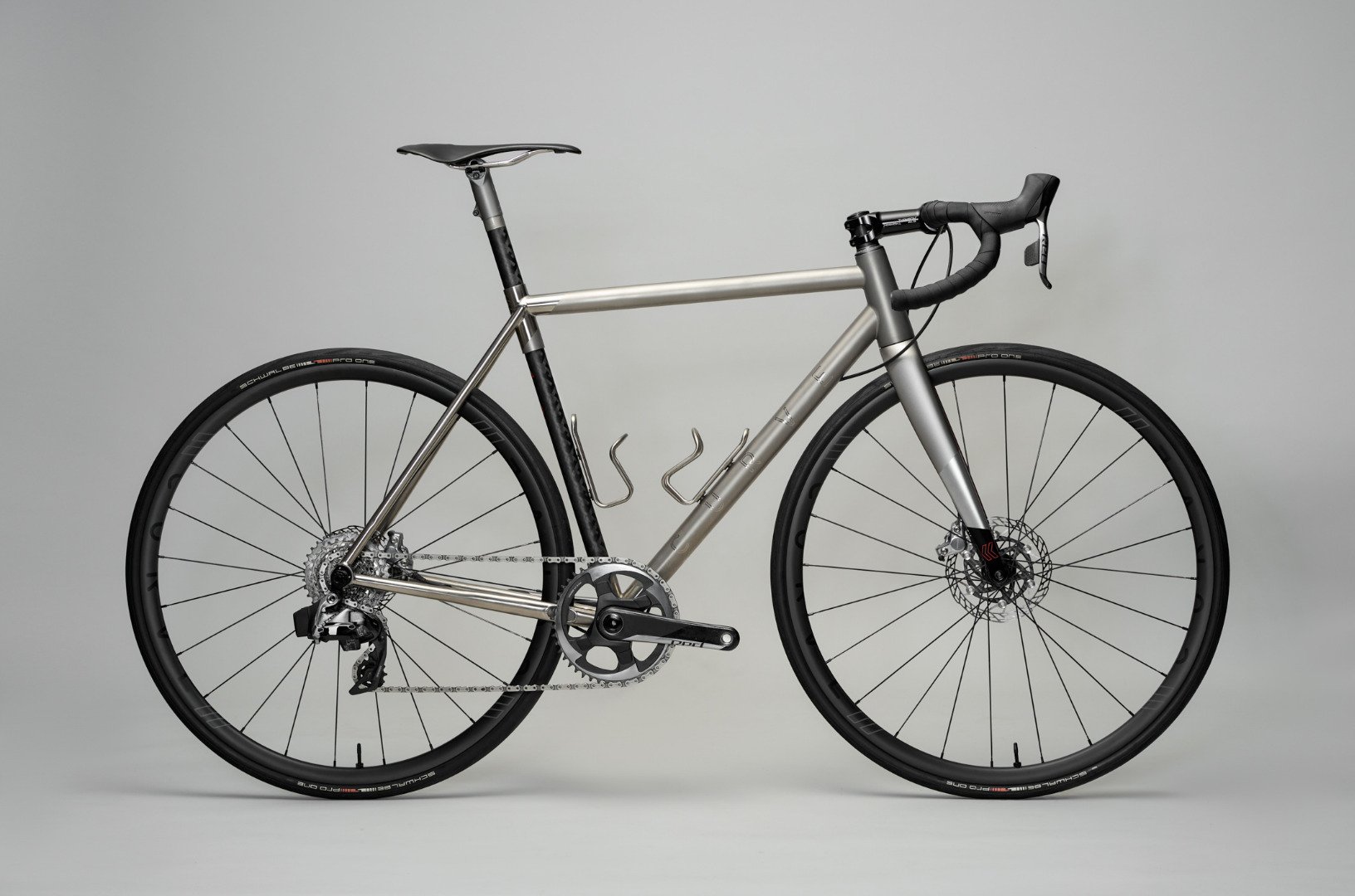 Je genauer man die Bikes betrachtet desto mehr Details entdeckt man an den Titan, Stahl oder Carbon/Titan Bikes. Sei es die Steckachse, die 4 Möglichkeiten zum lösen/anziehen mit sich bringt, falls man unterwegs mal was kaputt macht oder dem 60cm Walmer bar, falls man mal eine Wüste mit viel Gepäck und Rennlenker durchqueren will.
