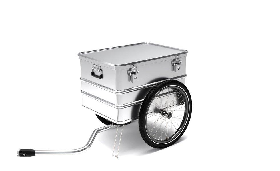 Hinterher Boxenanhänger sind besonders kompakt, da sie nur so breit und lang wie die jeweilige Alubox selbst sind. Sie kommen zudem "wie aus einem Guss" und auf das Wesentliche reduziert daher.