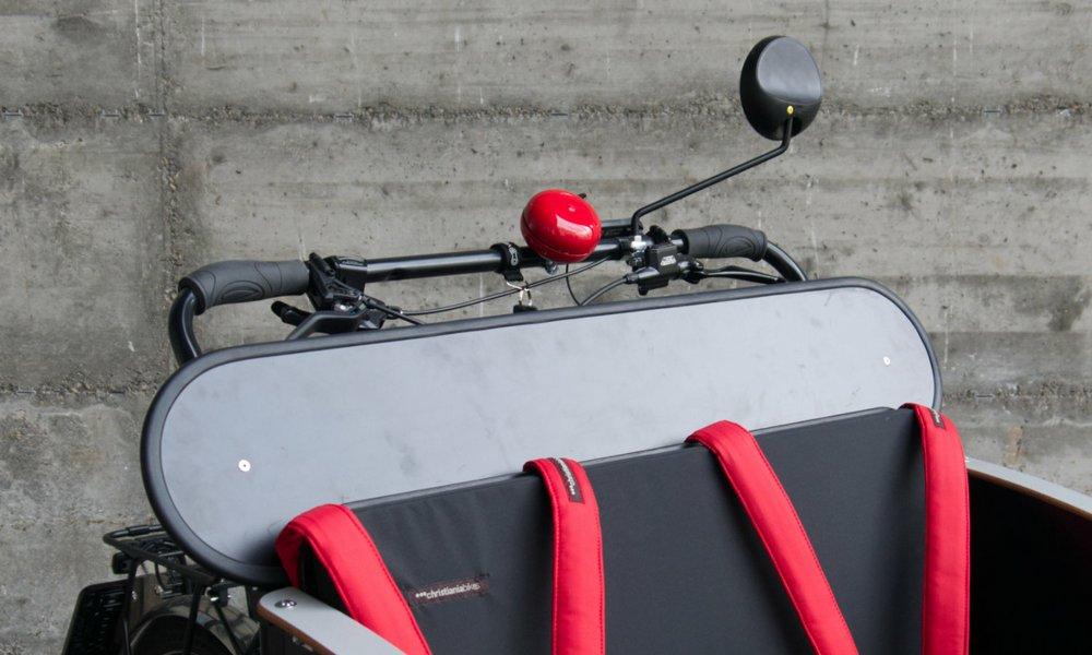 Nachdem die Passagiere in dem CHRISTIANIA Taxi-Bike Platz genommen haben, kann dieser Kaffee-Tisch quer verlaufend vor den Passagieren eingesteckt werden. Zwei stabförmige Stützen finden in den links und rechts angebrachten Halterungen an den Seitenflächen der Holzbox Platz. Die Passagiere können dann ihre Hände darauf ablegen oder z.B. Kaffee- oder Eisbecher darauf abstellen.