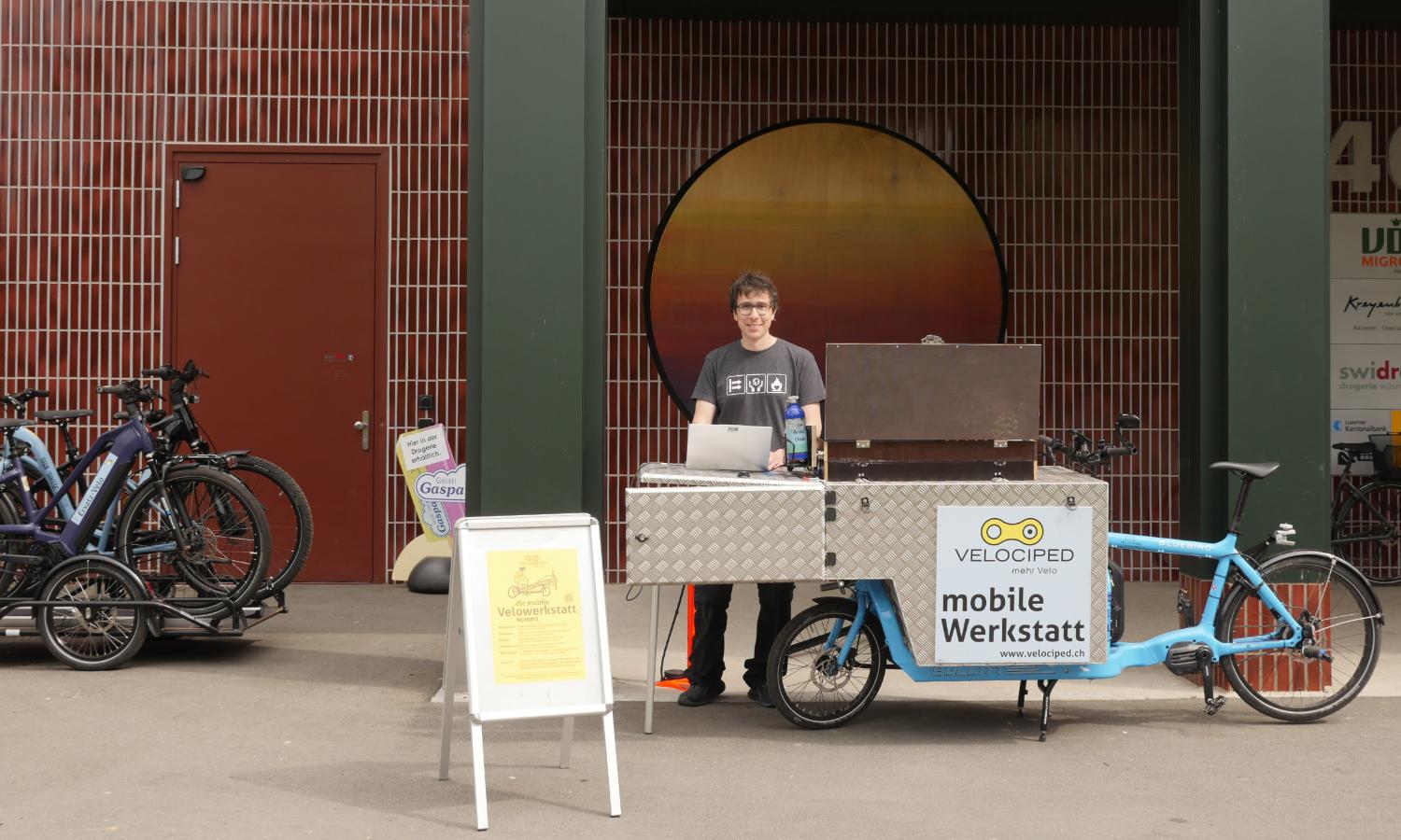 Mit unserer mobilen Werkstatt sind wir zwischen Ostern und Herbstferien wöchentlich an vier Orten in der Stadt Luzern vor Ort für Kleinreparaturen, Services und als Annahmestelle für Reparaturen.