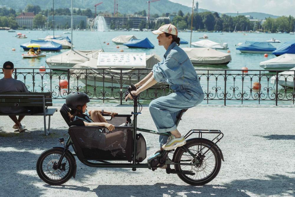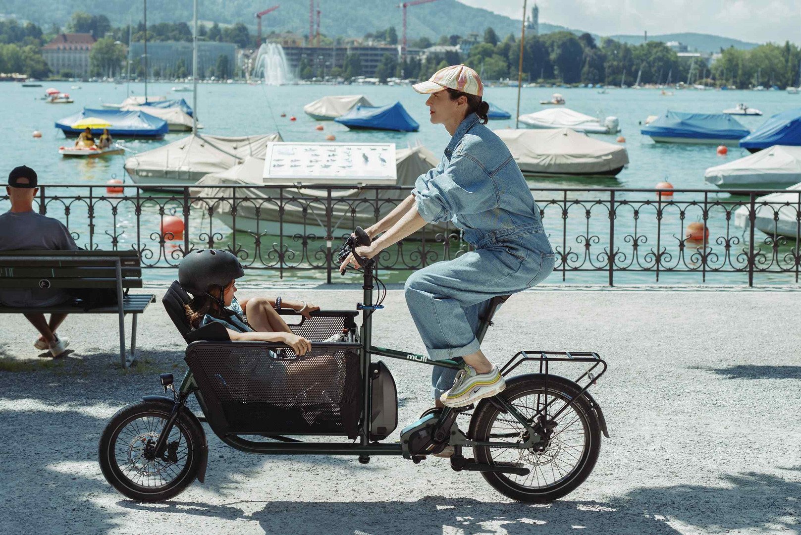 Trotz seiner kompakten Masse bietet es Platz für einen Kindersitz für zwei. Mit Blick nach vorne und Wind in den Haaren. Und wenn es mal bergauf geht oder die Woche lang war, gibt es das Muli auch mit E-Unterstützung.