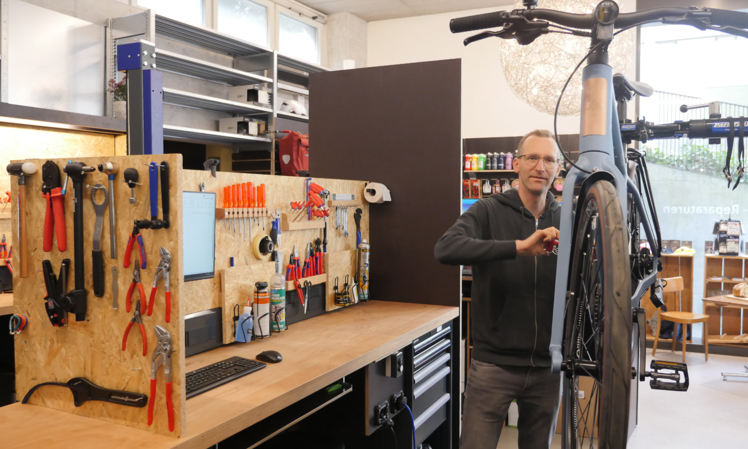 Und natürlich führen wir dort eine Werkstatt: An zwei modern eingerichteten Arbeitsplätzen führen wir Reparaturen und Services an E-Bikes und Velos durch. Da die Werkstatt klein ist und nicht viel Lagerkapazität vorhanden ist, machen wir dort vor allem kleine, schnelle Aufträge. Komme einfach vorbei oder buche deinen Reparatur-Termin online. Bei umfangreichen Reparaturen und Services fungiert der Standort als Annahmestelle für die grosse Werkstatt in Kriens, bei Bedarf kann der Velotransport-Service in Anspruch genommen werden.