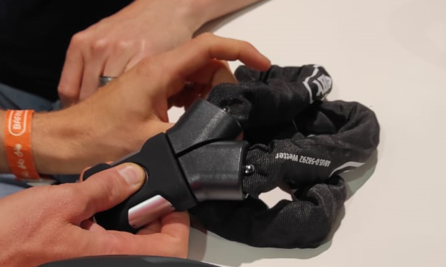 Michel testet bei Abus die Passform des neuen Stadt-Helms.