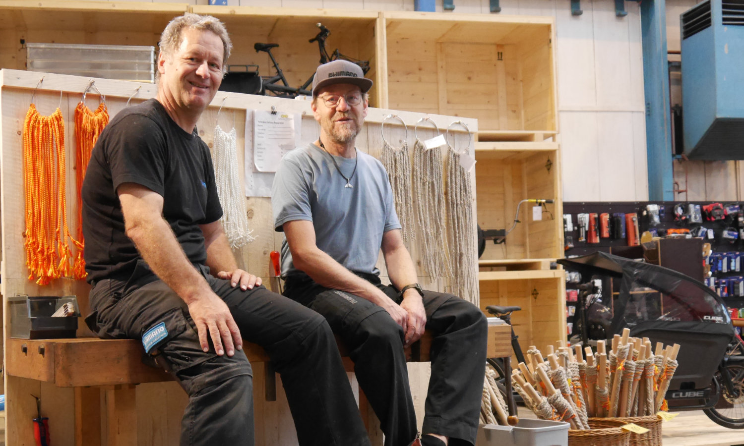 Es chlöpft und tätscht wieder in und um Chriens und wir sind parat : In der Werkstatt bieten wir wieder ein grosses Sortiment an Geisseln an: für Schüler:innen, Anfänger:innen bis hin zu den ganz langen Geisseln für Profi-Chlöpfer:innen. Und natürlich auch das passende Zubehör: Zwicke, Stäbe, Seile aber auch reflektierende Bänder und Westen.