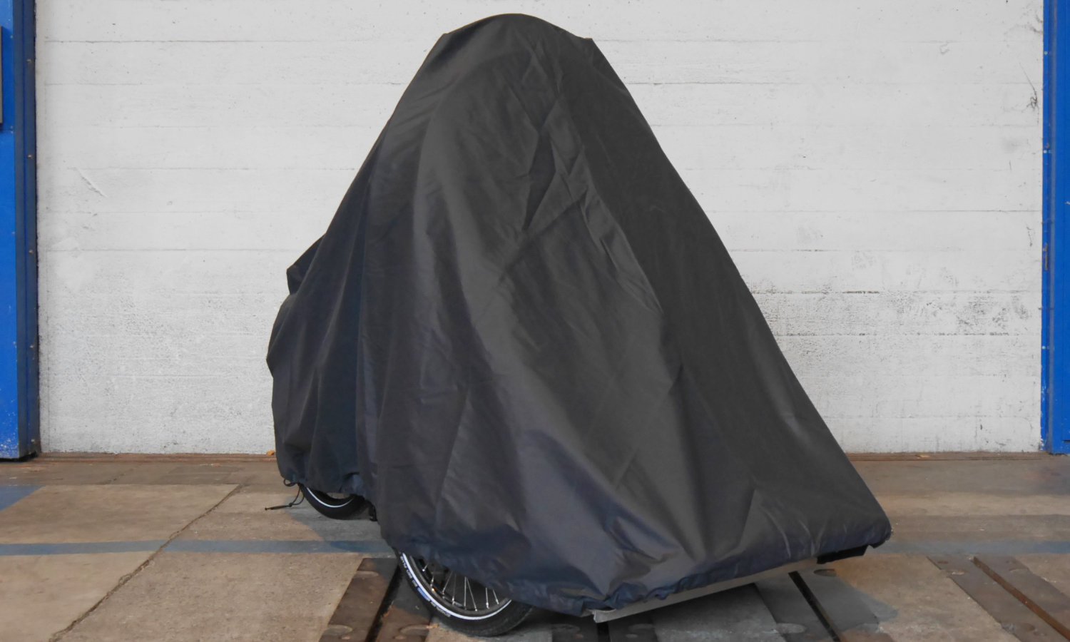 Wenn die Rikscha draussen parkiert oder für längere Zeit nicht gebraucht wird, kann sie mit einer Abdeckhaube abgedeckt werden. Diese haben wir in zwei Qualitäten: Eine leichtere, original von Christiania, welche sich mehr als Staubschutz eignet. Sowie nun neu, eine feste aus Boots-Planen, welche auch Wind und Wetter standhält.