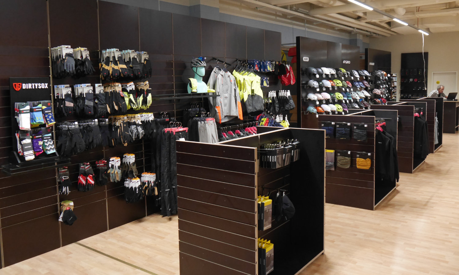 In seiner Grundkonzeption hat der «alte Laden» 13 Jahre gut funktioniert. Ganz «Velociped-like» haben wir nun den neuen Laden mit etwas externer Beratung konzipiert und auf die aktuellen Bedürfnisse angepasst. Planung und Umbau haben wir dann selber gemacht und für einige Tage die Tastatur gegen Inbusschlüssel, Zentrierständer, Akkuschrauber, Handkreissäge und Wasserwaage getauscht. Für die neue Einrichtung konnten wir so zu rund 70 % bestehendes Material aus dem alten Laden wiederverwenden, was unserem Anspruch an Nachhaltigkeit entspricht.