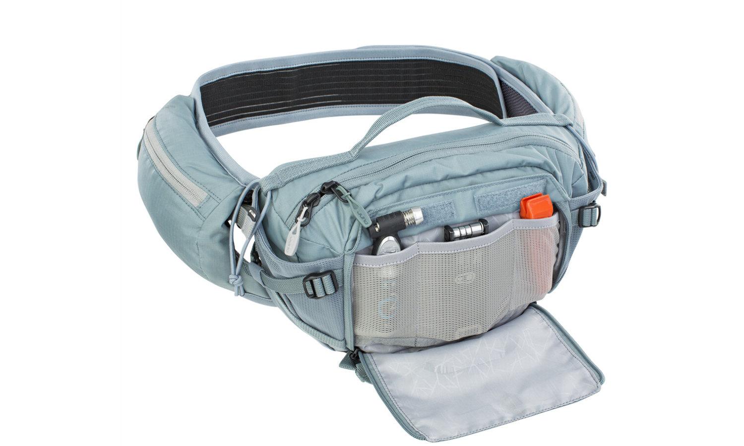 Das Hip Pack vn EVOC ist eine coole Alternative zum Rucksack, genug Stauraum für eine Windjacke, Handy, Ersatz Material und gut zu kombinieren mit Trinkblase bis zu 1.5 Liter Wasser.