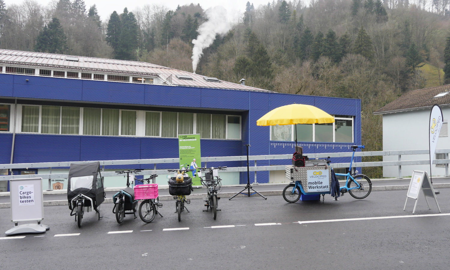 Bei der Ränggloch-Eröffnung hatten wir unsere Cargobike-Roadshow für Testfahrten mit dabei ..