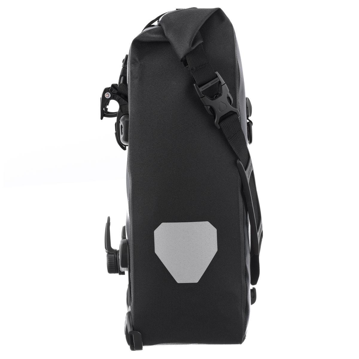 Universelle Packtasche (Paar) mit Rollverschluss für Lowrider oder Hinterradgepäckträger (z. B. für Kinderräder); Quick-Lock2.1 System bis 16 mm Gepäckträgerrohr; PVC-beschichtetes Polyestergewebe; inkl. Innentasche; Reflektoren; Tragegurt; Kombinationsmöglichkeit mit Rack-Pack 24 L und 31 L auf dem Hinterradgepäckträger.