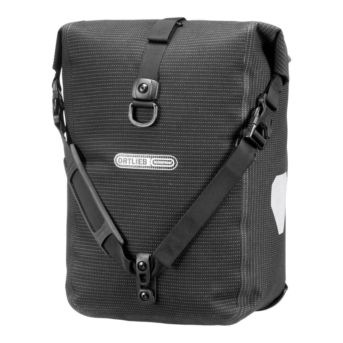 Universelle Packtasche mit Rollverschluss für Lowrider oder Gepäckträger (z.B. für Kinderräder); Quick-Lock2.1-System für Gepäckträger mit bis zu 16 mm Rohrdurchmesser; PU-beschichtetes Cordura-Gewebe mit eingearbeitetem Reflexionsfaden; inkl. Innentasche; Reflektoren; Schultergurt; kombinierbar mit Gepäckträgerpaket 24 L und 31 L auf dem Gepäckträger.