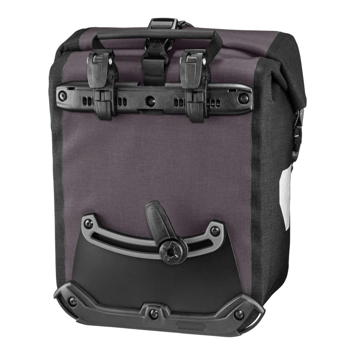 Universelle Packtasche (Paar) mit Rollverschluss für Lowrider oder Hinterradgepäckträger (z. B. für Kinderräder); Quick-Lock2.1 System bis 16 mm Gepäckträgerrohr; PU-beschichtetes Cordura-Gewebe; inkl. Innentasche; Reflektoren; Tragegurt; Kombinationsmöglichkeit mit Rack-Pack 24 L und 31 L auf dem Hinterradgepäckträger.