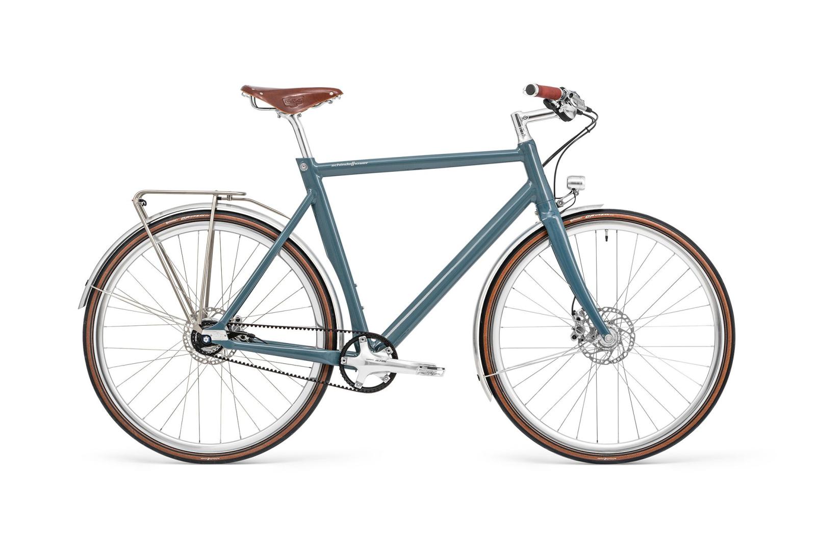 Friedrich setzt als klassisch-urbanes Alltagsrad neue Standards: Die Schindelhauer-typisch reduzierte Designsprache harmoniert perfekt mit allen Komponenten und geht eine Symbiose ein aus sportlicher Eleganz mit tourenfreundlicher Ausstattung. Dazu tragen eine entspannte Sitzposition und komfortable Abstimmung bei der Rahmengeometrie bei. In der Stadt agil und effizient unterwegs, verkörpert Friedrich ebenso den idealen Begleiter für Wochenendausflüge. Dank hochwertiger Komponenten und bester Verarbeitung ist Friedrich für die Ewigkeit gebaut.