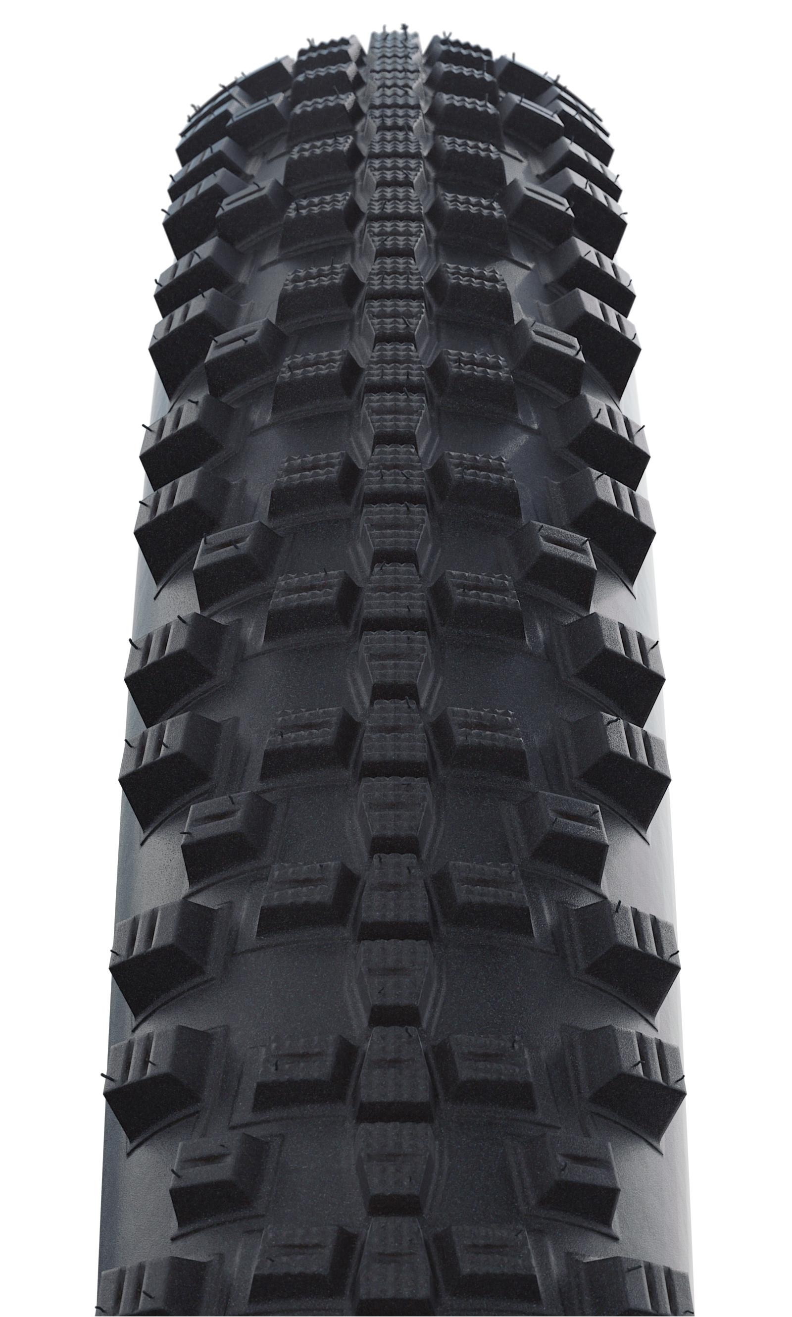 Der kompakte Mittelsteg sorgt für angenehmes Abrollen, die kantigen Aussenstollen garantieren einen optimalen Offroad-Grip