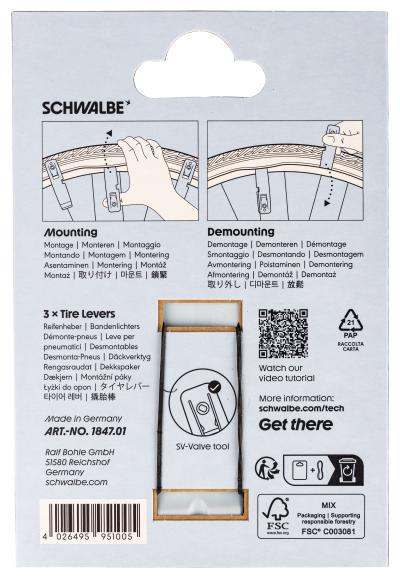 Durch die verbesserte Klemmfunktion hält der Schwalbe-Reifenheber auch bei anspruchsvollen Reifenwechseln fest