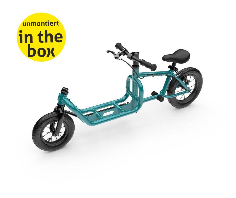 Auch junge Fahrradkuriere brauchen das passende Equipment. Das Mighty Junior von Super Cycles ist das weltweit erste Lastenlaufrad und unser Favorit für kleine Abenteurer. Absolutes Highlight bleibt die robuste, 30 cm lange Ladefläche, die sicher zwischen dem 10-Zoll-Vorderrad und dem größeren 12-Zoll-Hinterrad sitzt. Dank der dicken Balloonreifen rollt das Modell extrem komfortabel über Unebenheiten. Ob Lieblings-Teddy oder Picknick – hier findet jedes Fundstück Platz, während die Kinder spielend leicht die Welt erkunden.
