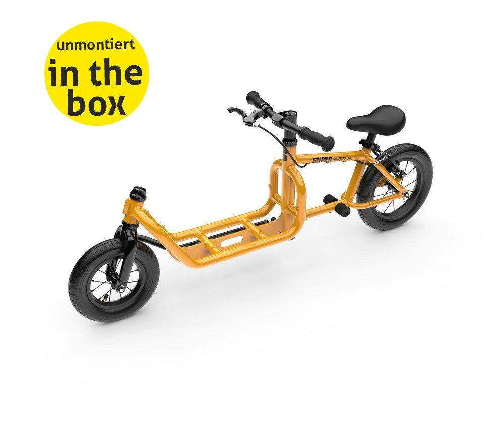 Auch junge Fahrradkuriere brauchen das passende Equipment. Das Mighty Junior von Super Cycles ist das weltweit erste Lastenlaufrad und unser Favorit für kleine Abenteurer. Absolutes Highlight bleibt die robuste, 30 cm lange Ladefläche, die sicher zwischen dem 10-Zoll-Vorderrad und dem größeren 12-Zoll-Hinterrad sitzt. Dank der dicken Balloonreifen rollt das Modell extrem komfortabel über Unebenheiten. Ob Lieblings-Teddy oder Picknick – hier findet jedes Fundstück Platz, während die Kinder spielend leicht die Welt erkunden.
