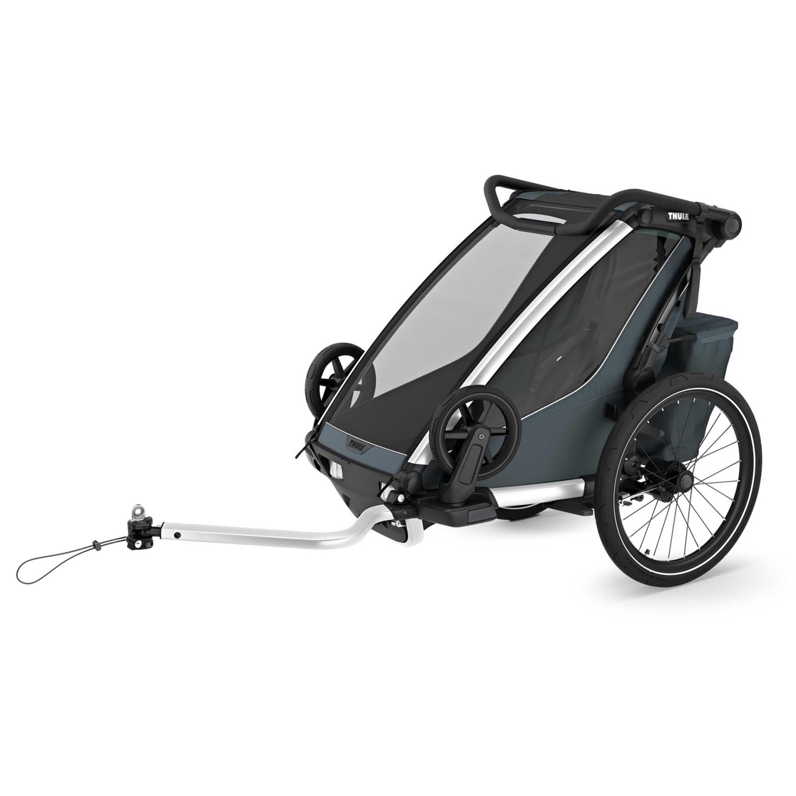 Der Fahrradanhänger für aktive Eltern. Überragender Komfort und Flexibilität. Der Thule Chariot Cross ist ein robuster und sicherer Anhänger für den häufigen Gebrauch unter allen Bedingungen. Er ermöglicht Dir einen einfachen Wechsel zwischen Radfahren und Spazieren – mit einer schnellen, einhändigen Raddrehung lässt sich der Fahrradanhänger in Sekundenschnelle in einen Kinderwagen verwandeln. Die neu gestaltete Deichsel verfügt über eine sichere Befestigung mit nur einem Klick, die die Anbringung vereinfacht und mit einem integrierten Schloss zusätzlichen Schutz bietet. Mit flexiblen Sitzmöglichkeiten für ein oder zwei Kinder erfüllt der Thule Chariot Cross 2 die individuellen Bedürfnisse jeder Familie. Umfassende Sicherheitsmerkmale. Die Sicherheit steht beim Thule Chariot Cross 2 im Mittelpunkt. Ausgestattet mit dem abnehmbaren Thule Delight Fahrradrücklicht und reflektierenden Streifen an den Seiten des Anhängers und den Rädern wirst Du unter allen Bedingungen wahrgenommen. Die einfache und sichere Montage der Deichsel gewährleistet jederzeit eine korrekte Befestigung. Alle Thule Fahrradanhänger werden in unseren eigenen hochmodernen Testeinrichtungen einem Crashtest unterzogen, wodurch wir sicherstellen können, dass unsere Anhänger alle Sicherheitsstandards übertreffen. Ultimativer Komfort für Dein Kind mit nachhaltigem Design. Im Inneren des Thule Chariot Cross 2 erwartet die Kinder ein weicher, ergonomisch geformter Sitz für unvergleichlichen Komfort. Dank der modularen Sitzmöglichkeiten kannst Du wählen, ob ein Kind in der Mitte oder zwei Kinder auf beiden Seiten des Anhängers sitzen sollen. Beim Thule Chariot Cross 2 setzen wir auf Nachhaltigkeit und verwenden Materialien, die nicht nur frei von PFAS sind, sondern auch nicht ausbleichen und sich reparieren oder ersetzen lassen, um die Lebensdauer Deines Anhängers zu verlängern. Die Komplettlösung. Der Thule Chariot Cross 2 lässt sich mit dem Jogging- oder Ski-Set (separat erhältlich) ganz einfach in einen